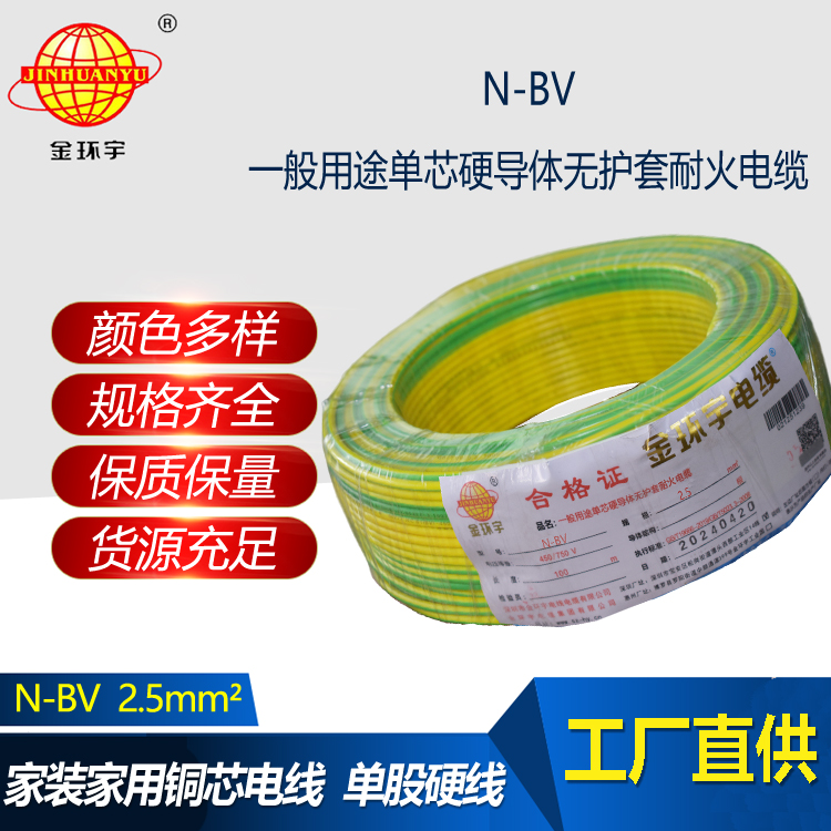 金環宇電線 N-BV 2.5平方 bv耐火電線 深圳bv型絕緣電線