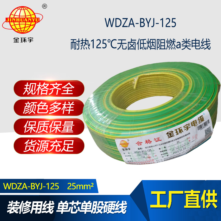 金環宇電線 布電線WDZA-BYJ-125無鹵低煙阻燃25平方銅芯絕緣電線