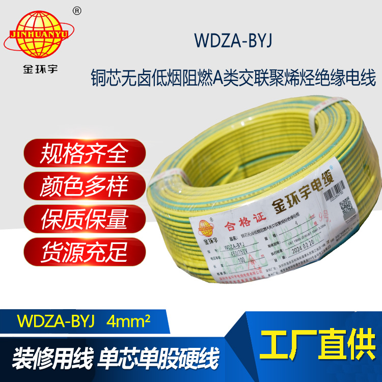 金環宇電線 a類阻燃電線 WDZA-BYJ 4平方無鹵低煙電線 家裝用線