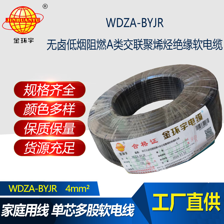 WDZA-BYJR電線采用低煙無鹵阻燃聚烯烴護套和交聯聚乙烯絕緣材料,使其具有無鹵、低煙和A級...