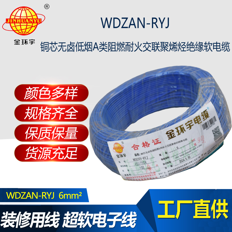 WDZAN-RYJ 低煙無(wú)鹵阻燃耐火電線(xiàn),采用銅芯,A類(lèi)耐火交聯(lián)聚烯烴絕緣,適用于額定電壓450/750V及以下的固定布線(xiàn)和電力、電子設(shè)備內(nèi)部連...