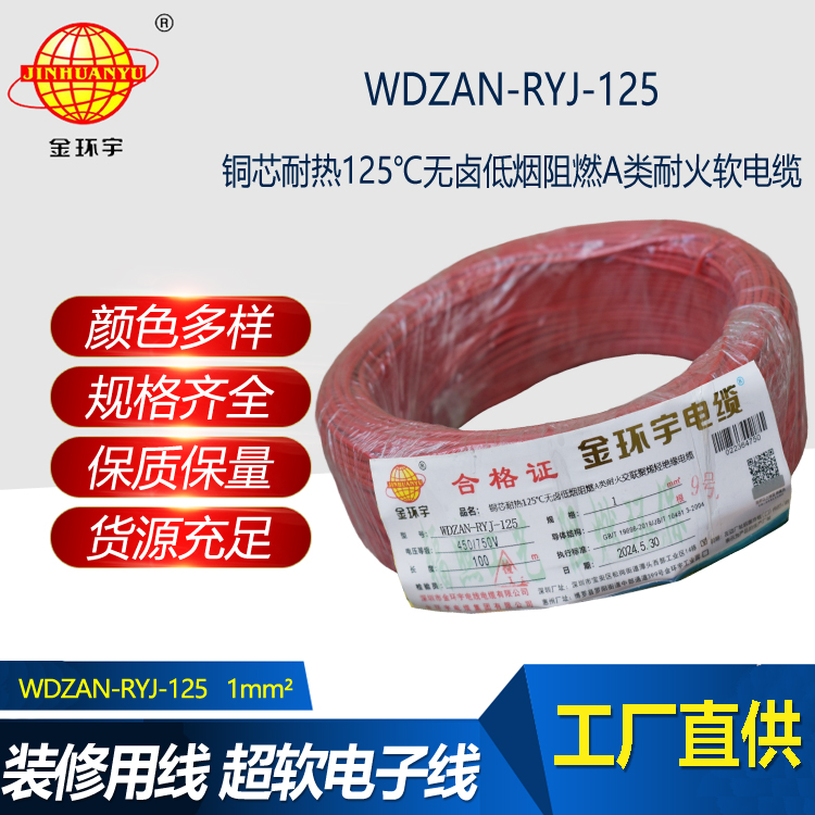 WDZAN-RYJ-125耐熱125℃銅芯低煙無鹵軟阻燃a類耐火軟電線采用銅芯耐熱材料,耐火溫度達到125℃,采用無鹵低煙阻燃A類...