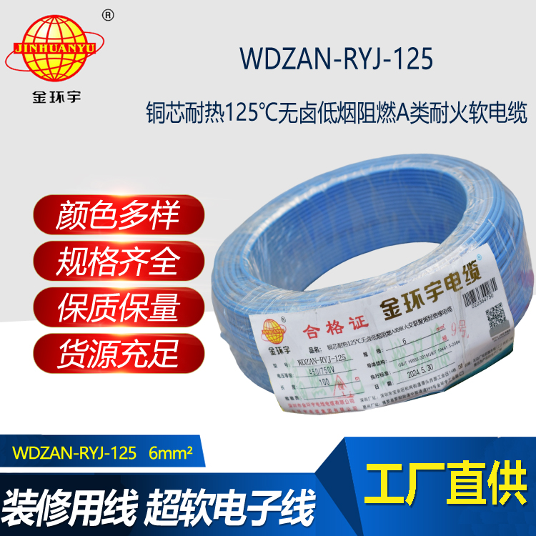 WDZAN-RYJ-125耐熱125℃銅芯低煙無鹵軟阻燃a類耐火軟電線,采用銅芯耐熱125℃無鹵低煙...