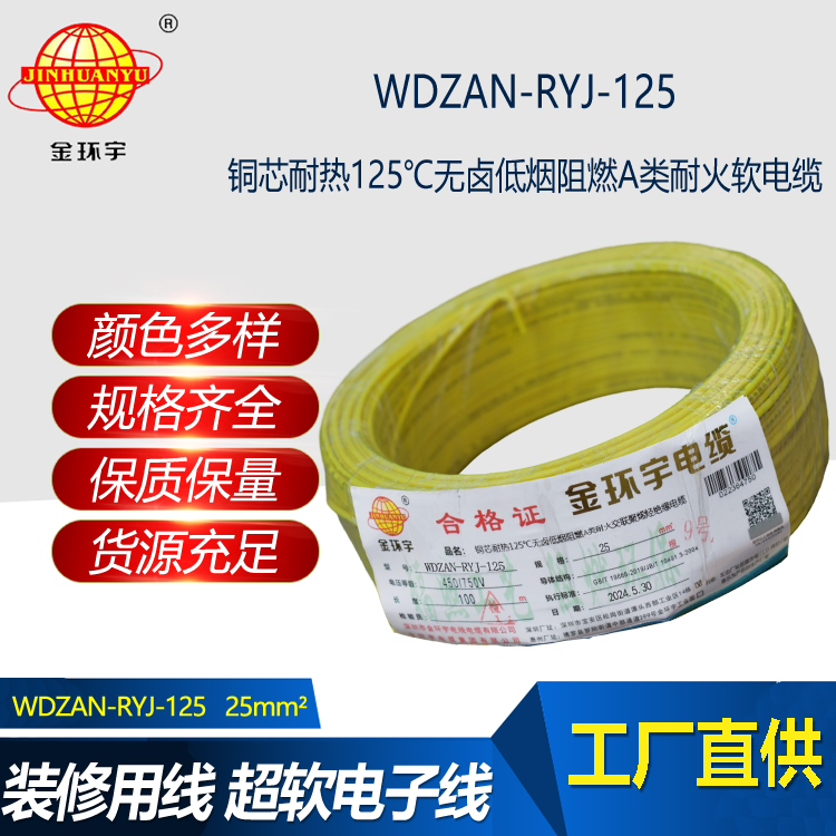 WDZAN-RYJ-125耐熱125℃銅芯低煙無鹵軟阻燃a類耐火軟電線是一款高性能絕緣電線,具有銅芯、耐熱125℃、無鹵、低煙、阻燃等特點。該電線廣泛應用于各類電力、電子設備內部連接...