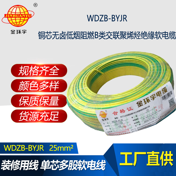 WDZB-BYJR指低煙無鹵阻燃聚烯烴護套,交聯聚乙烯絕緣軟電線。WDZB分別是無鹵、低煙、阻燃、聚烯烴,B指電線,YJ是交聯聚乙烯絕緣,R是軟。