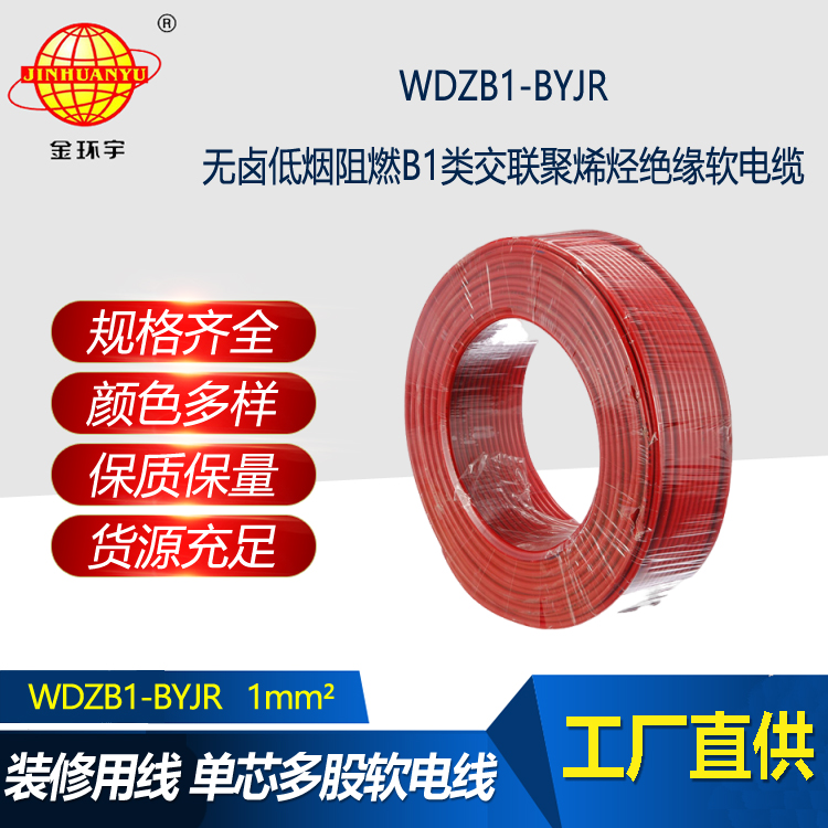 金環宇電線電纜 WDZB1-BYJR 1平方銅線 無鹵低煙阻燃B1級絕緣電線