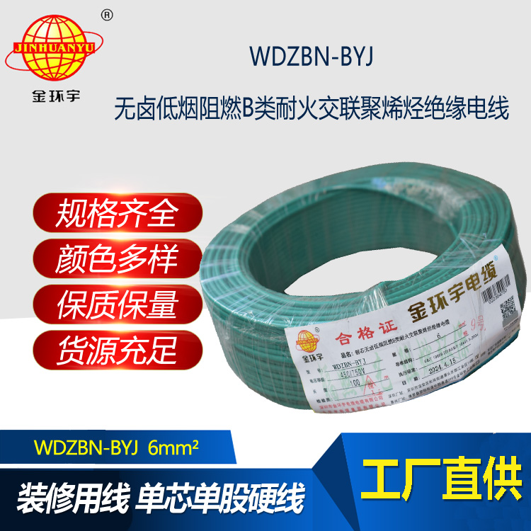 金環宇電線電纜 WDZBN-BYJ 6平方 銅芯線 低煙無鹵阻燃耐火單股硬線