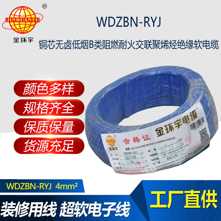 WDZBN-RYJ電纜:全稱B級阻燃耐火低煙無鹵交聯(lián)聚烯烴絕緣布電線,執(zhí)行標(biāo)準(zhǔn)GB/T19666-2005。