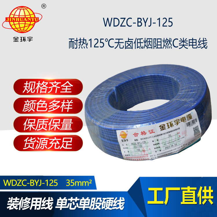 WDZ-BYJ-125銅芯耐熱125℃無(wú)鹵低煙阻燃輻照交聯(lián)聚稀烴絕緣電纜
