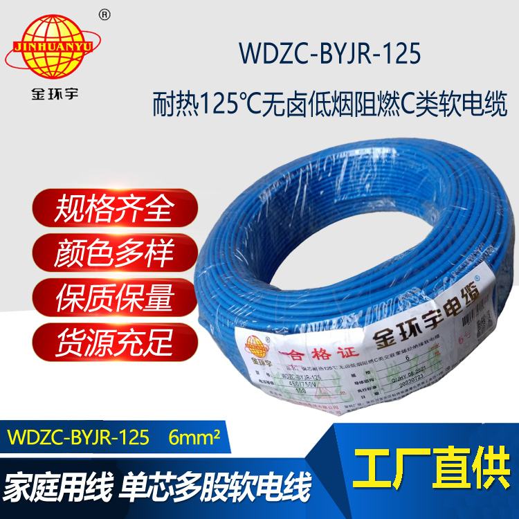 金環(huán)宇電線 耐熱低煙無鹵c級阻燃電線6平方價格WDZC-BYJR-125 家裝電線