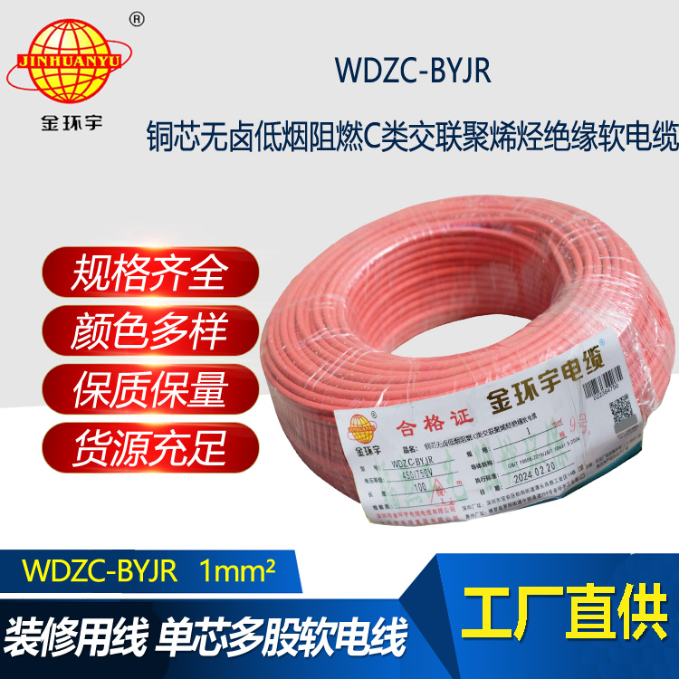 WDZC-BYJR指低煙無鹵阻燃聚烯烴護套,交聯聚乙烯絕緣軟電線。WDZC分別是無鹵、低煙、阻燃、聚烯烴,B指電線,YJ是交聯聚乙烯絕緣,R是軟。
