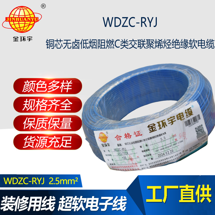 金環宇電線 低煙無鹵c級阻燃軟電線WDZC-RYJ 2.5平方