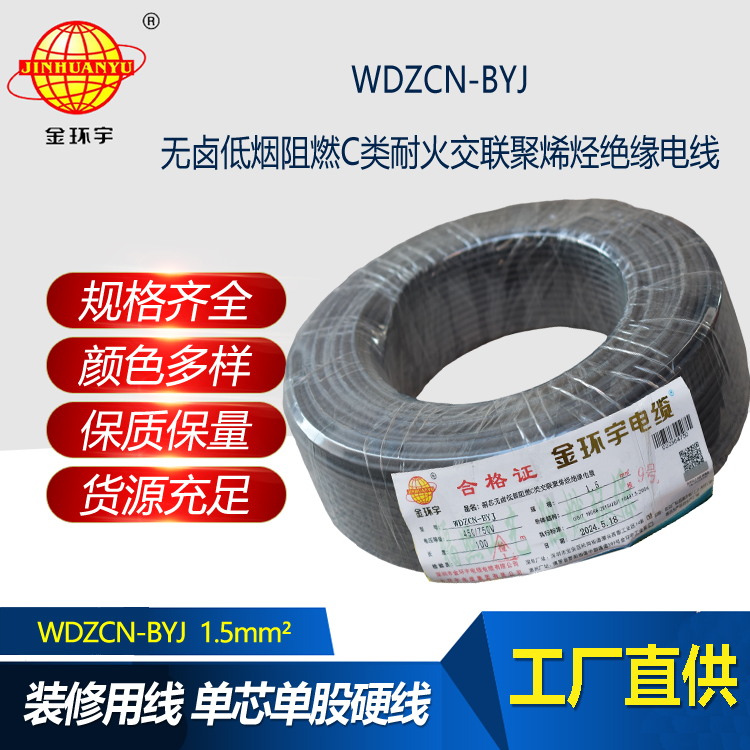 WDZCN-BYJ:即為銅芯無鹵低煙交聯聚氯乙烯絕緣阻燃c類耐火電線,是指電線的絕緣層材料鹵素物質,在燃燒的情況下,不釋放含鹵氣體,煙霧濃度低,參照標準為JB/T 10491-2004,型號有WDZAN-BYJ、WDZBN-BYJ、WDZCN-BYJ等,