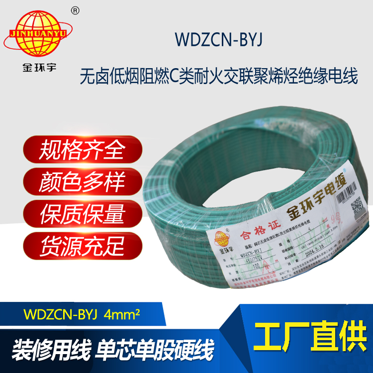 金環(huán)宇電線電纜 WDZCN-BYJ 4平方 低煙無鹵家裝電纜 c級阻燃耐火電線