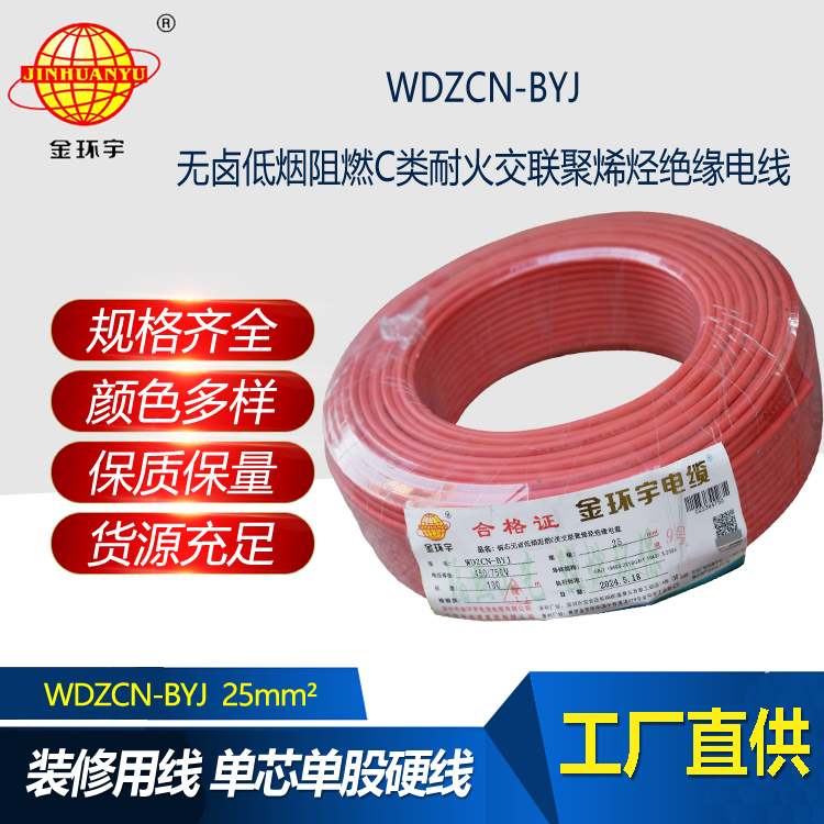 WDZCN-BYJ:即為銅芯無鹵低煙交聯聚氯乙烯絕緣阻燃c類耐火電線,是指電線的絕緣層材料鹵素物質,在燃燒的情況下,不釋放含鹵氣體,煙霧濃度低,參照標準為JB/T 10491-2004,型號有WDZAN-BYJ、WDZBN-BYJ、WDZCN-BYJ等,