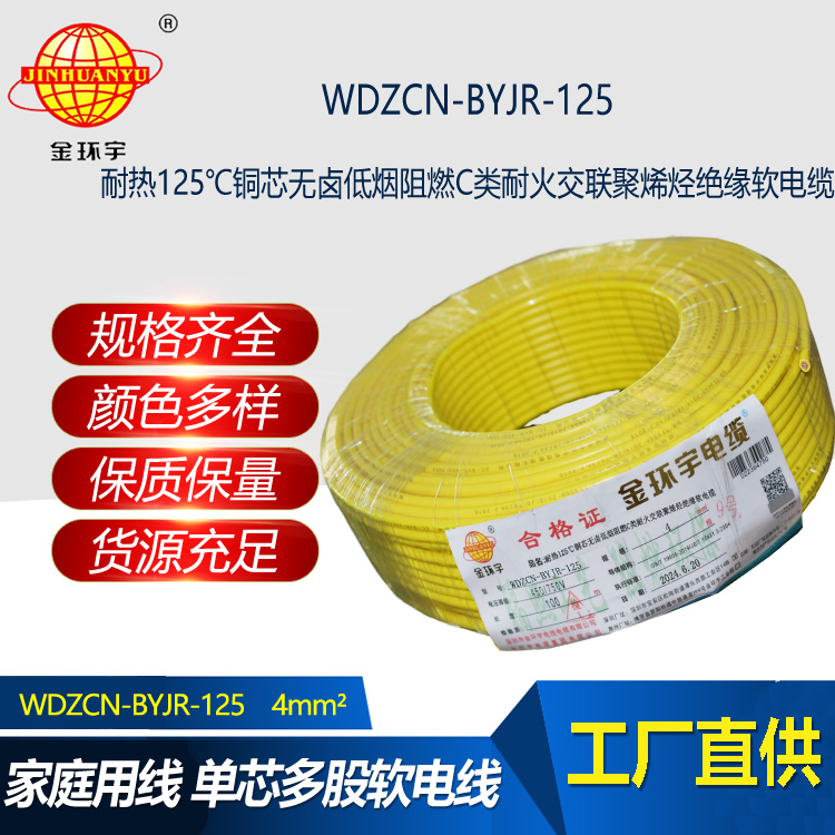 金環(huán)宇電線電纜 低煙無鹵阻燃耐火電線WDZCN-BYJR-125裝修電線4平方報價