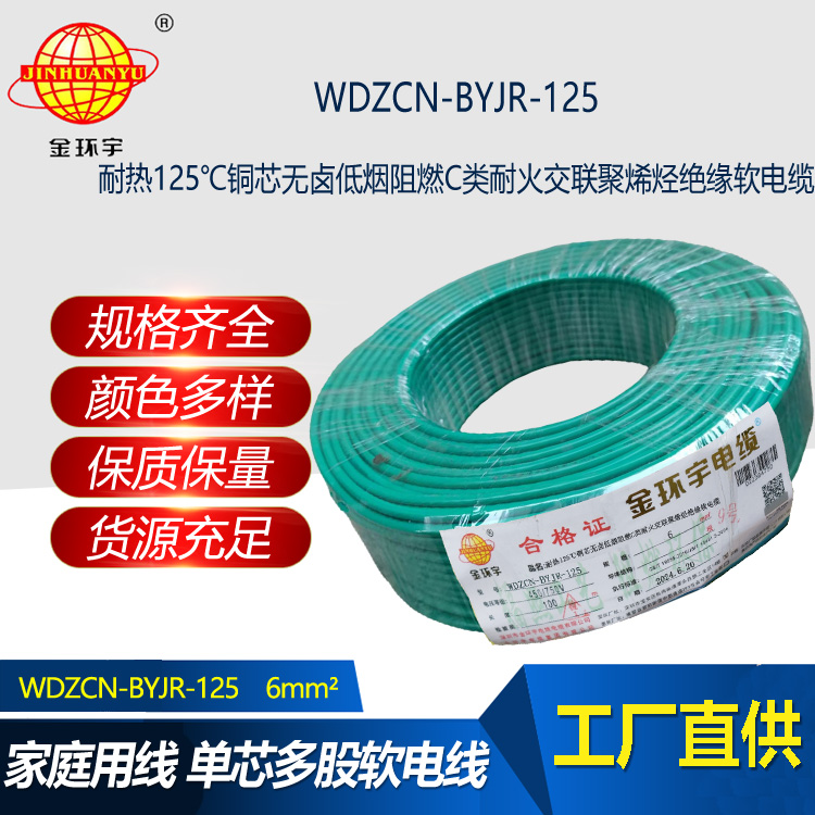 WDZCN-BYJR-125低煙無鹵電線,采用銅芯耐熱125℃無鹵低煙阻燃材料,符合C類耐火交聯聚烯烴絕緣軟電線標準。具有阻燃和耐火性能,燃燒時產生少量煙霧,保障室內空氣清潔。產品阻燃耐...