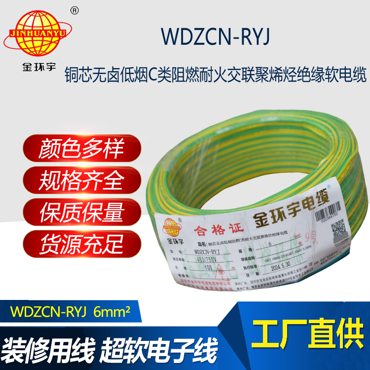 WDZCN-RYJ電纜:全稱C級阻燃耐火低煙無鹵交聯聚烯烴絕緣布電線,執行標準GB/T19666-2005。