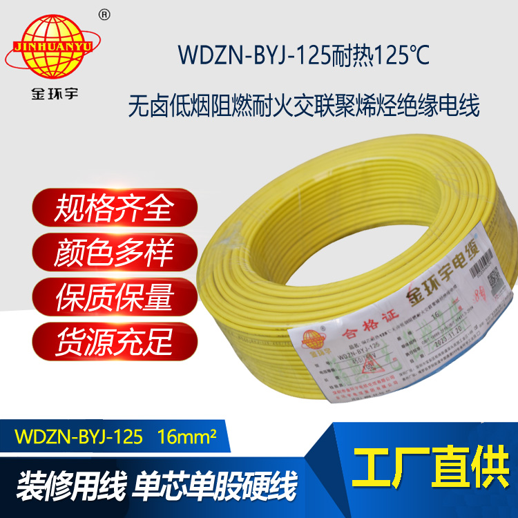 金環宇電線 深圳電線WDZN-BYJ-125銅芯低煙無鹵阻燃耐火16平方電線