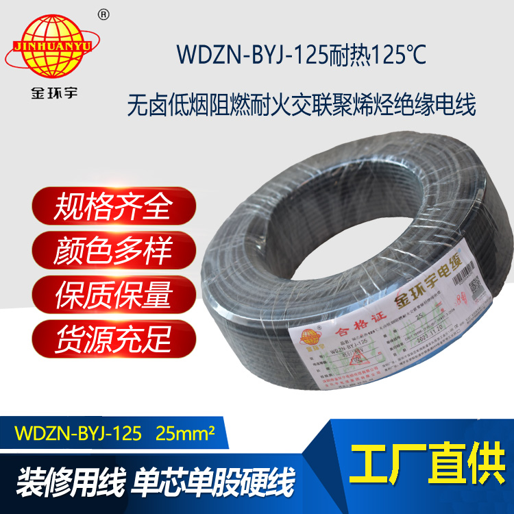 金環宇電線 阻燃耐火低煙無鹵電線25平方WDZN-BYJ-125塑銅絕緣電線