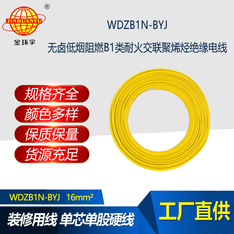 金環宇電線 WDZB1N-BYJ 16平方 耐火電線 無鹵低煙阻燃B1類電線