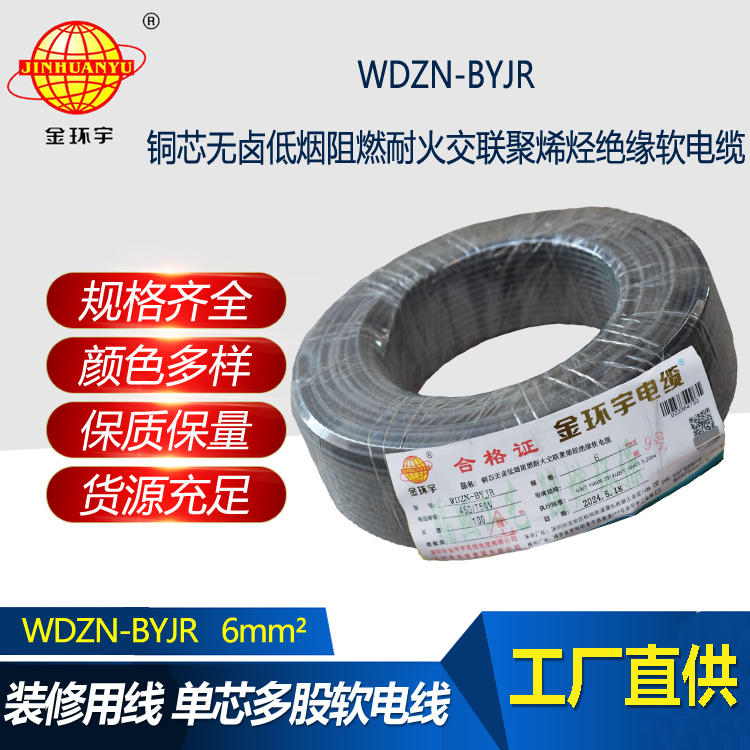 金環宇電線電纜 WDZN-BYJR 6 低煙無鹵環保家裝用線 阻燃耐火電線