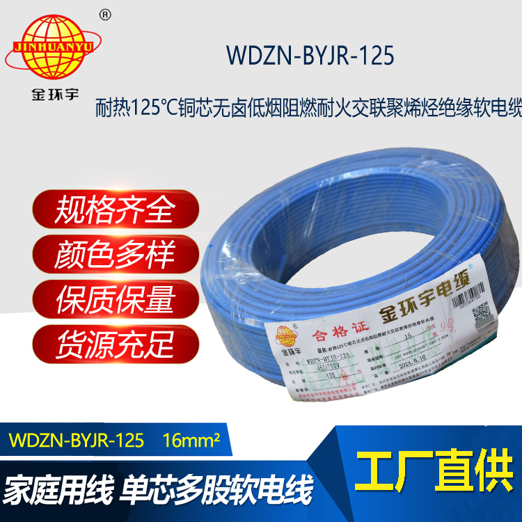金環宇電線電纜 深圳16平方電線價格WDZN-BYJR-125低煙無鹵阻燃耐火軟電線