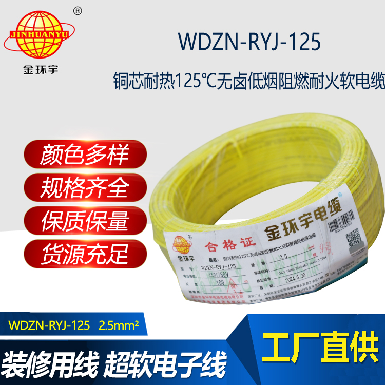 WDZN-RYJ-125低煙無鹵軟電線采用銅芯耐熱125℃無鹵低煙阻燃耐火交聯(lián)聚烯烴絕緣材料制成,適用于額定電壓450/750V及以下的固定布線和電力、電...