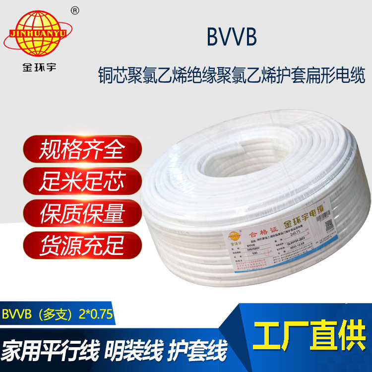 BVVB 銅芯聚氯乙烯絕緣聚氯乙烯護套平型電纜,適用于交流電壓450/750V及以下動力裝置、日用電器、儀表及電信設備用的電纜電線。