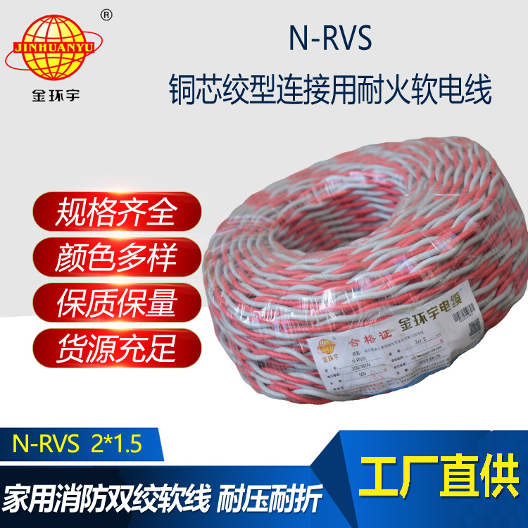 金環宇電線N-RVS 2X1.5平方耐火電線 消防雙絞線 燈頭線 軟線