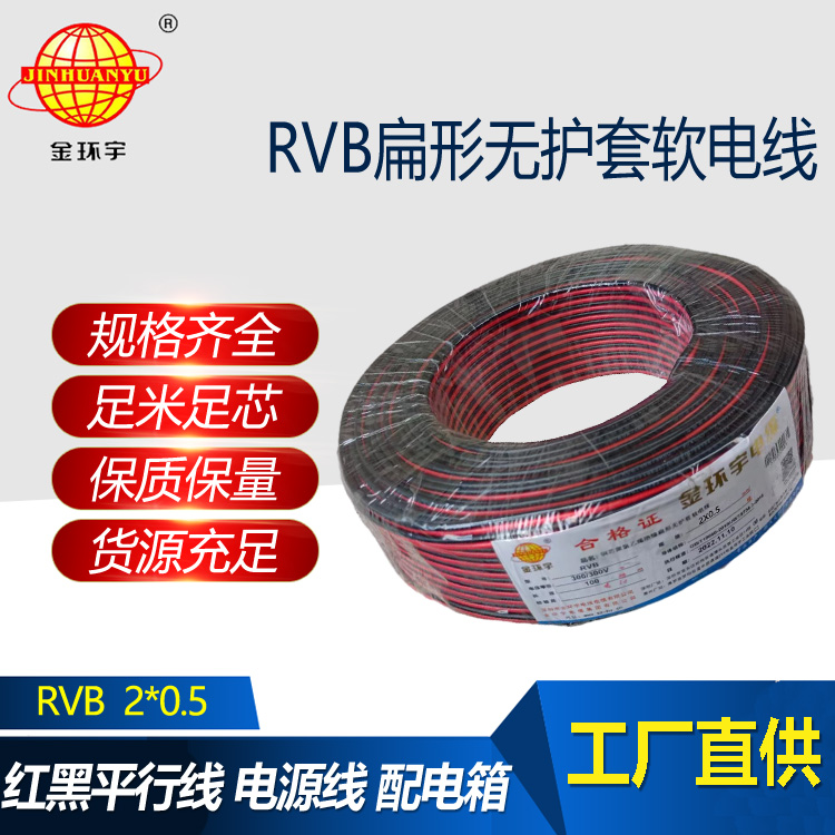 金環宇電纜 RVB 2X0.5平方 銅芯rvb電纜 LED電源線 紅黑平行線