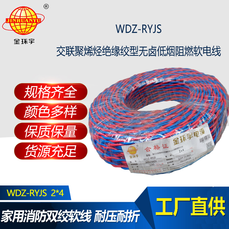WDZ-RYJS :是銅芯低煙無鹵阻燃交聯聚烯烴絕緣絞型連接軟線。是消防用阻燃聚烯烴絕緣連接軟線是參照GB/T5023-2008等標準制訂的,其阻燃特性符合GB/Tl9666類的要求。