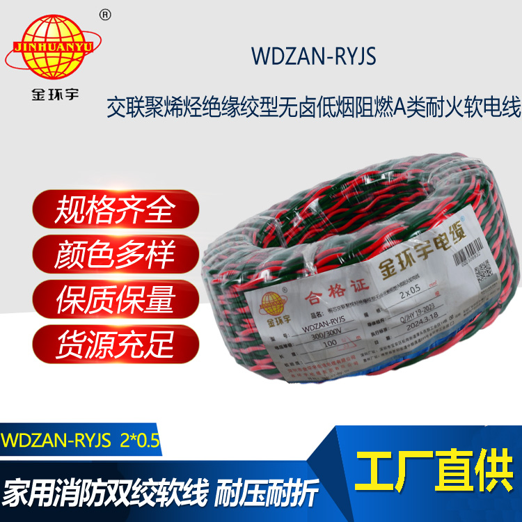 金環宇電線電纜 WDZAN-RYJS 2X0.5低煙無鹵阻燃A類耐火雙絞軟線