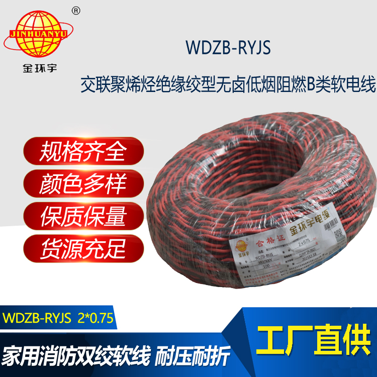 WDZB-RYJS:低煙無鹵交聯聚烯烴絕緣B類阻燃雙絞線;是消防用低煙無鹵阻燃聚烯烴絕緣連接軟線是參照GB/T5023-2008等標準制訂的,其耐火特性符合GB/Tl9666類的要求。