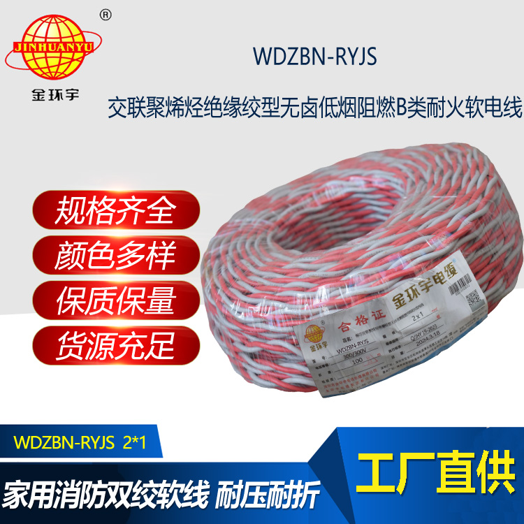 WDZBN-RYJS:低煙無鹵交聯聚烯烴絕緣B類阻燃耐火雙絞線;是消防用低煙無鹵阻燃耐火聚烯烴絕緣連接軟線是參照GB/T5023-2008等標準制訂的,其耐火特性符合GB/Tl9666類的要求。