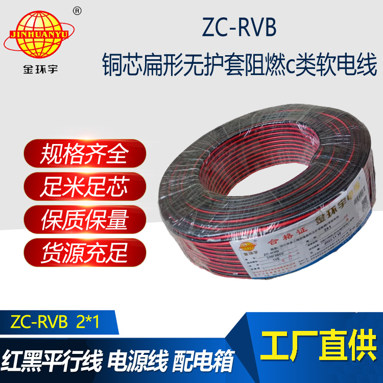 金環宇電纜 深圳rvb電纜 阻燃紅黑平行線ZC-RVB 2X1平方電源線