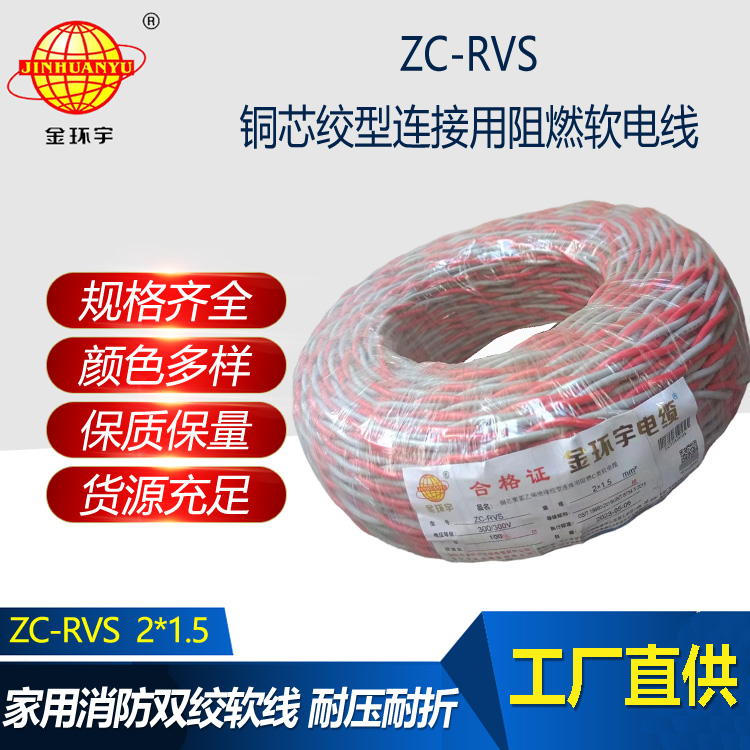 金環宇電線電纜 阻燃家用電纜ZC-RVS花線2X1.5平方電動車充電線燈頭雙絞線