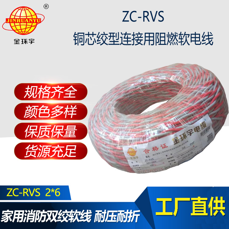 金環宇電線 花線ZC-RVS2X6平方消防阻燃雙絞線 足米