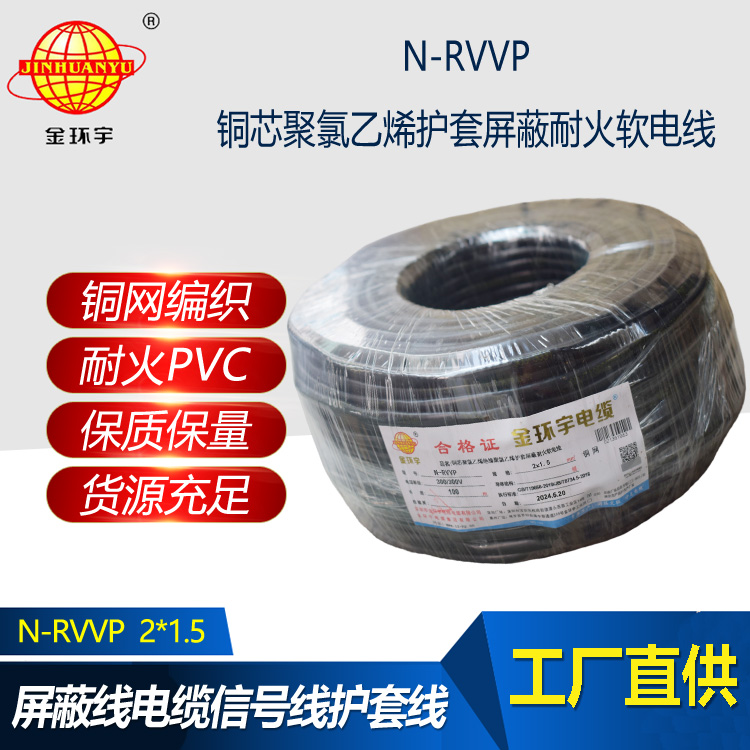 金環宇電線電纜 多芯屏蔽線 耐火電纜N-RVVP 2X1.5平方