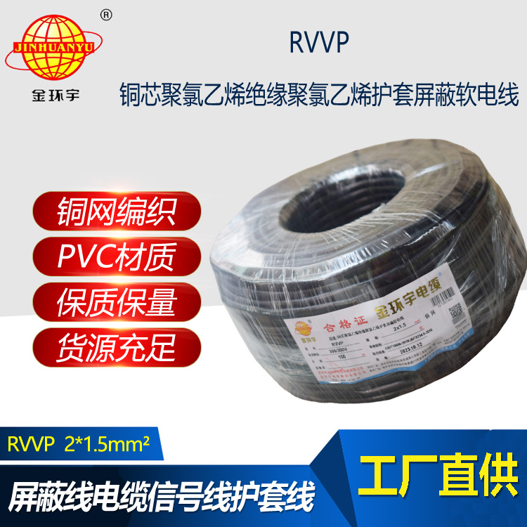 金環宇電線電纜 RVVP 2X1.5平方屏蔽電源信號線 深圳rvvp電纜報價