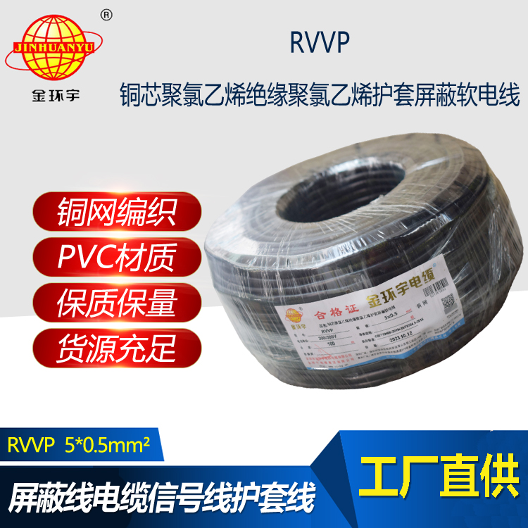 金環宇電纜 深圳rvvp銅網編織屏蔽電纜RVVP 5x0.5平方