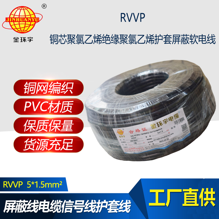 金環宇電纜 RVVP 5X1.5平方 5芯rvvp電纜 深圳屏蔽軟電纜廠