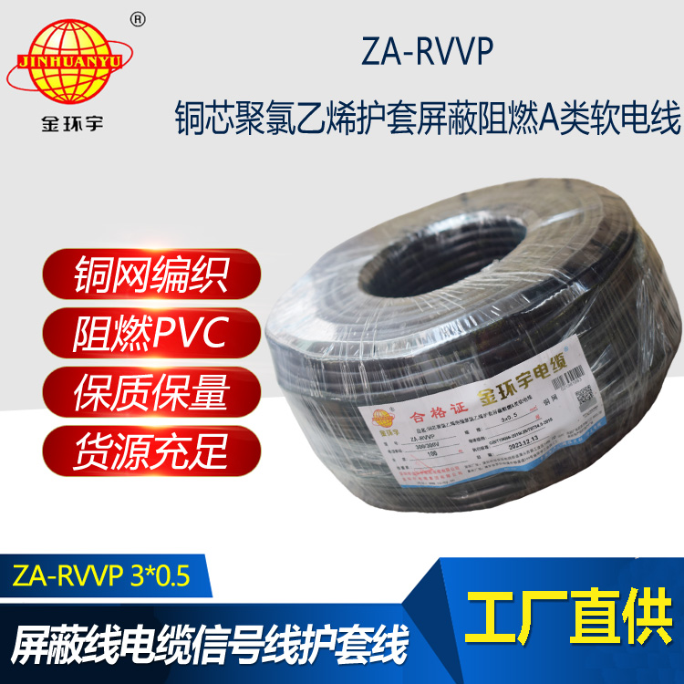 金環宇電纜 3芯屏蔽電線ZA-RVVP 3X0.5平方 阻燃電線電纜
