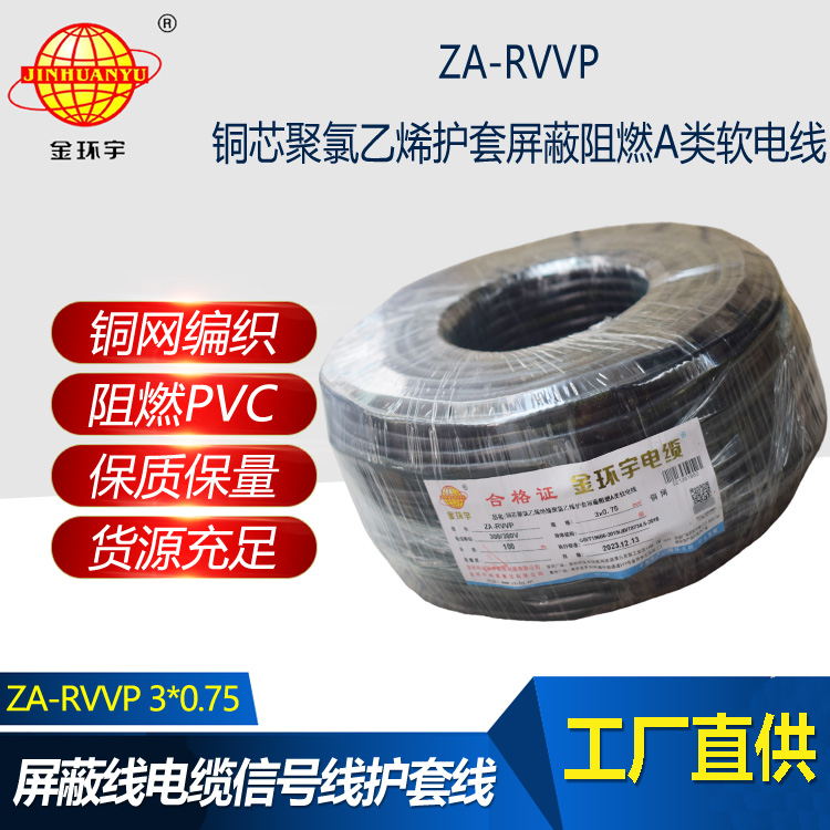 金環宇電纜 ZA-RVVP 3X0.75平方 a級阻燃屏蔽電纜rvvp