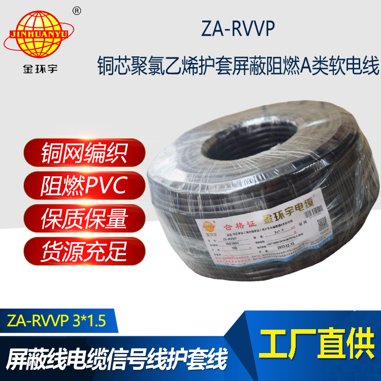 金環宇電纜 a類阻燃多芯屏蔽電纜 ZA-RVVP 3X1.5平方