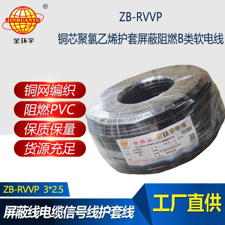 金環宇電纜 ZB-RVVP 3X2.5平方 深圳阻燃b類屏蔽電纜價格