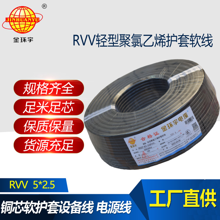 金環(huán)宇電纜 軟電纜rvv 電源線纜 RVV 5X2.5平方 護(hù)套線