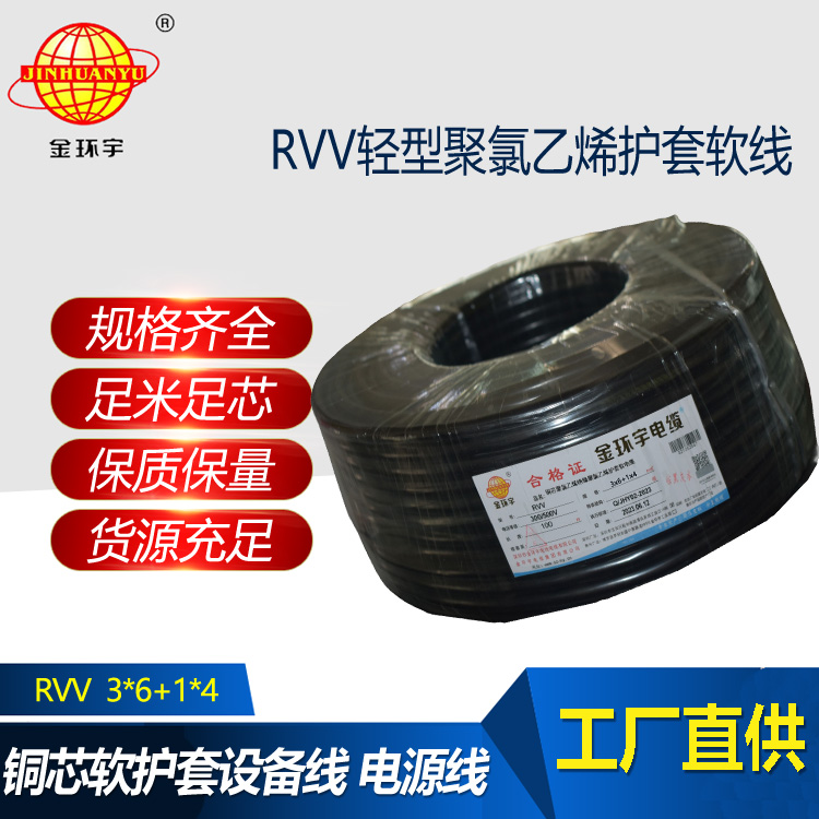 金環宇電纜 4芯rvv電纜 深圳軟護套電纜RVV 3x6+1x4平方