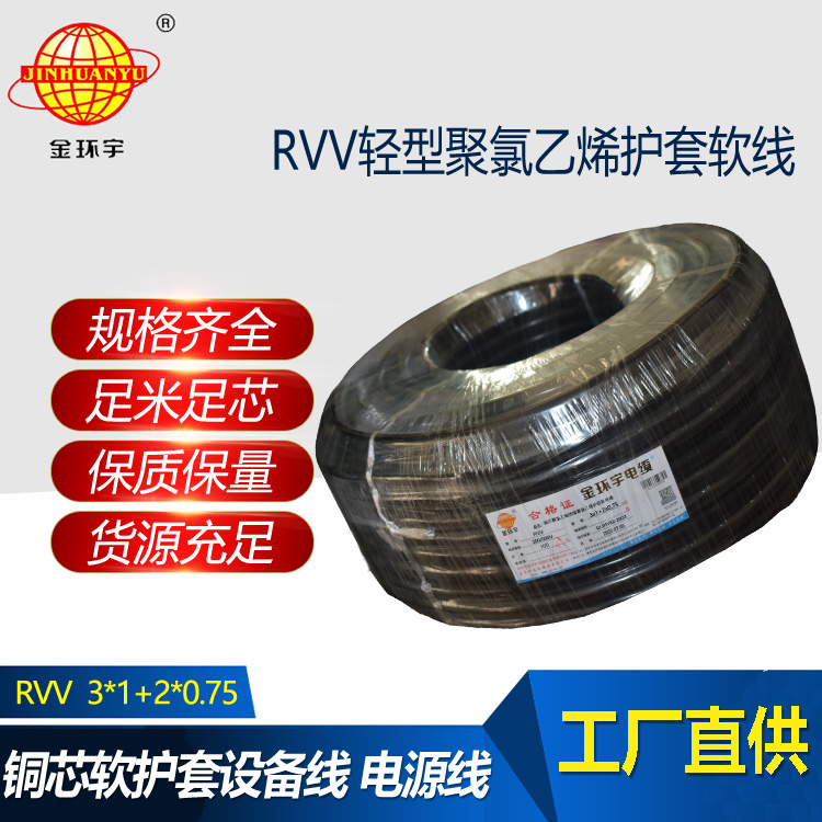 金環宇電纜 深圳rvv電纜報價RVV 3x1+2x0.75平方 電源線