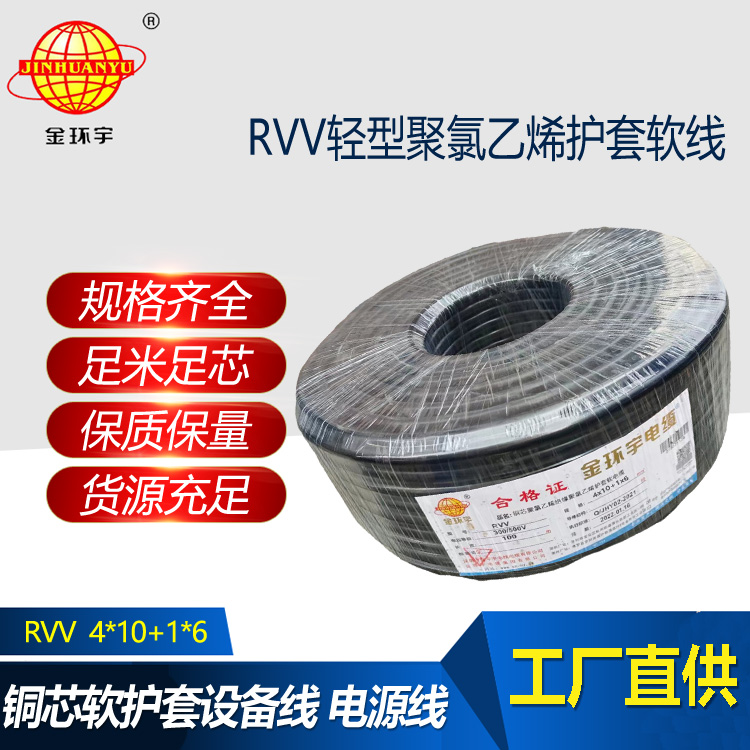 金環宇電線電纜 室外rvv電纜RVV4x10+1x6平方 深圳rvv軟電纜